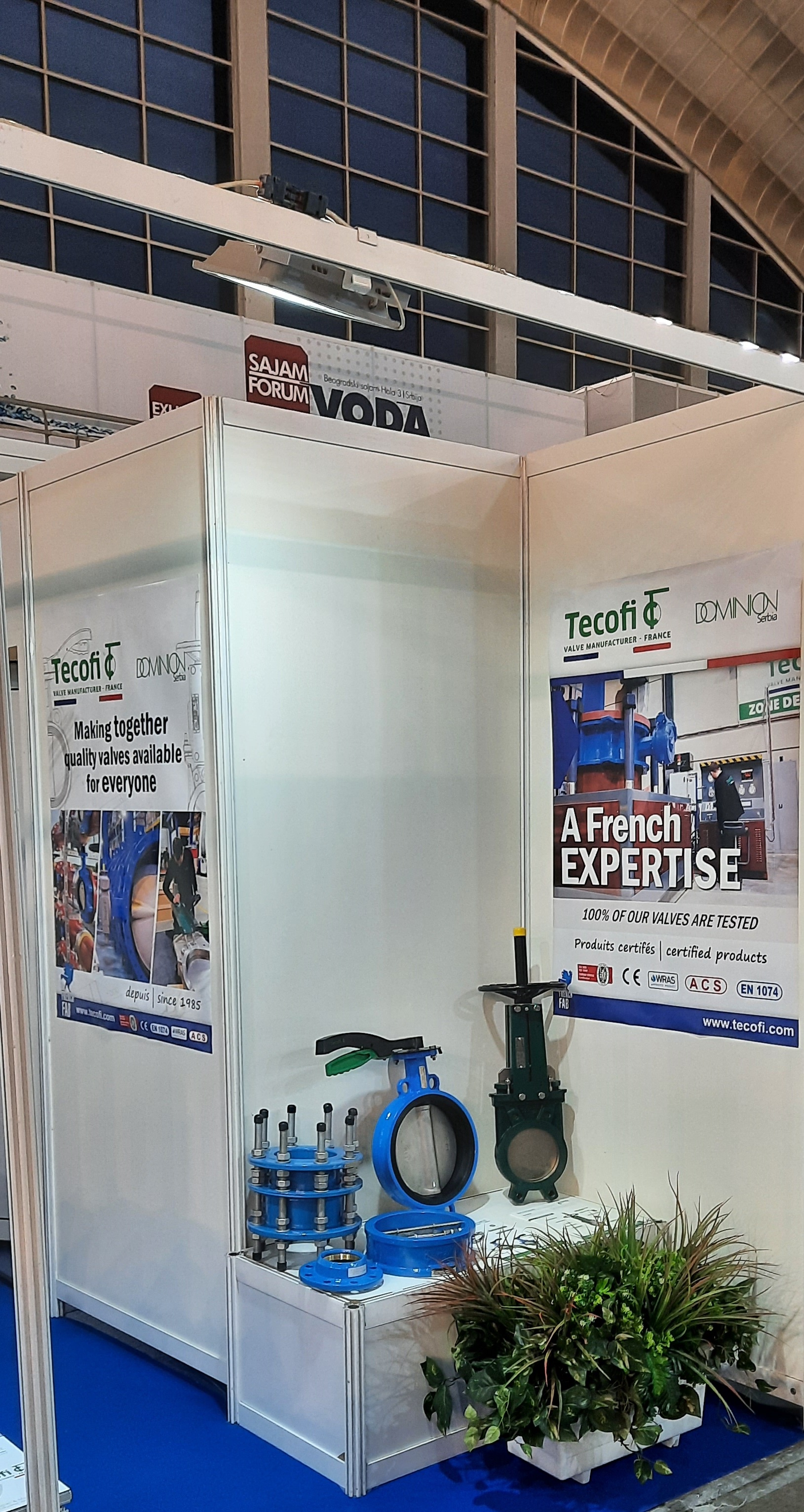 Francuski proizvođač Tecofi predstavio se sa širokom lepezom svojih proizvoda namenjenih vodosnabdevanju i ragulaciji otpadnih voda: leptirasti ventili, nožasti zasuni, nepovratni ventili, zasuni, regulacioni ventili, vazdušni ventili i drugi prozvodi širokog raspona ugradbenih dimenzija. Svi Tecofijevi proizvodi su 100% testirani i srtifikovani po Bureau Veritas, CE, WRAS, ACS i EN1074 standardima.